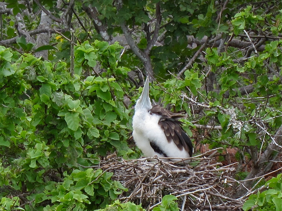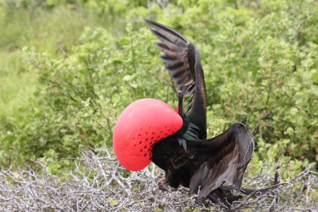 pagos, North Seymour Island and most commonly Genovesa Island. Both species are found elsewhere in the Atlantic also. In addition three other great pantropical frigatebird species are found elsewhere but not on the Galapagos Islands. Habitat: Frigatebirds build nests in low-lying shrubs and producing a single egg. They cannot swim because they will drown in water. They have a small uropygial gland thus have very limited oil for their feathers.