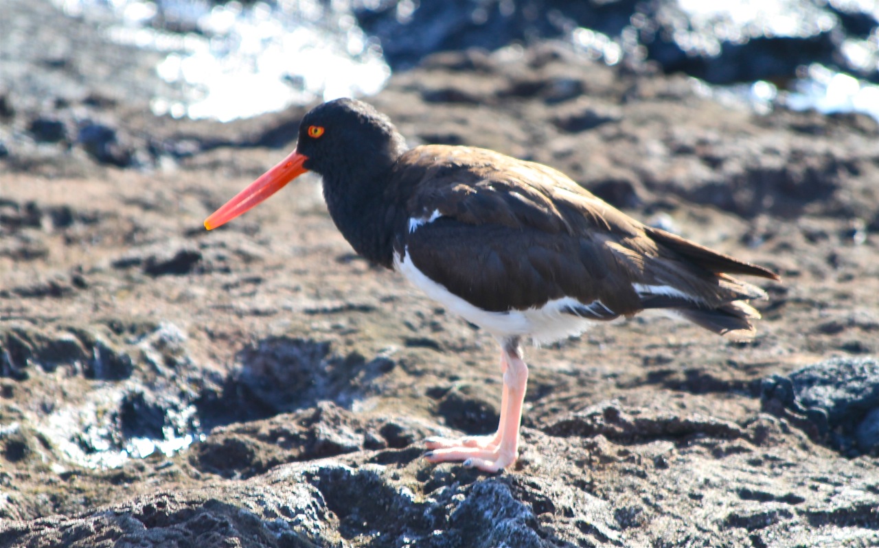Appearance: Black and white body and a long, thick orange beak. This shorebird is approximately 19 inches (42 – 52 cm) in length.