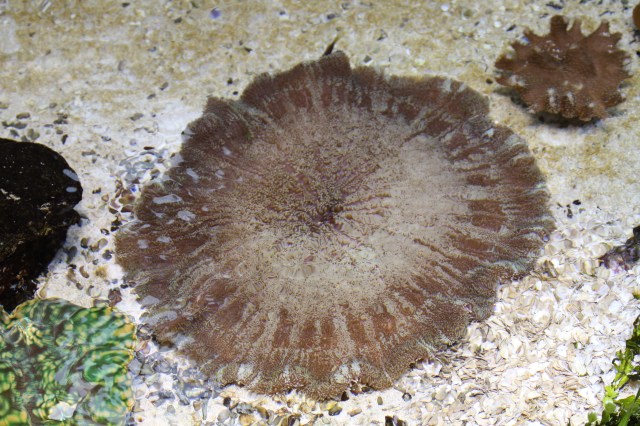 APPEARANCE: Identified by its thick central column with large pedal disc, very short, stubby tentacles and tentacle-free oral area, and attains a diameter of about 60 cm. Can be distinguished from their close relatives Stichodactyla gigantea and Stichodactyla mertensii by the lack of any coloration, spots or markings on the underside of the anemone and down its column