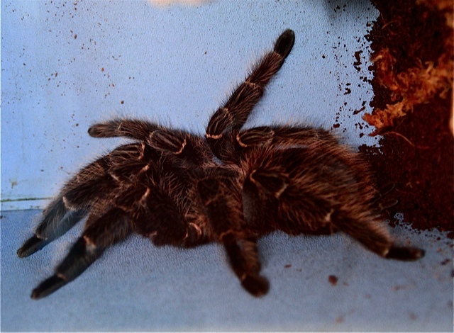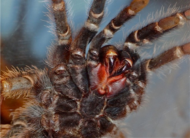 While not highly aggressive and bites are not fatal to humans (most tarantula bites are similar to a bee sting in toxicity), this big bruiser, because of its long fangs, can inflict a serious wound which one researcher defined as “capable of medically significant mechanical damage”!