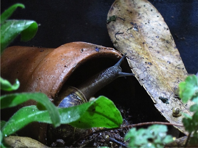 REPRODUCTION/DEVELOPMENT: Like other Pulmonata, C.aspera is a hermaphrodite, producing both male and female gametes. Mating garden snails shoot at one another with long, sharp “love” darts. If a dart hits its mark, it improves that snail’s odds of reproduction. For garden snails, there’s more to sex than shooting darts. But “he” can’t fertilize “her” own eggs, so it must mate with another. Courtship takes hours as two snails rub bodies, exchange “love” bites and wave the tentacles on their heads.