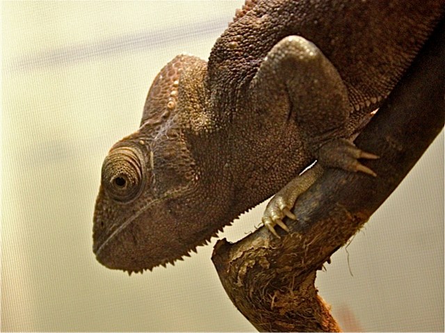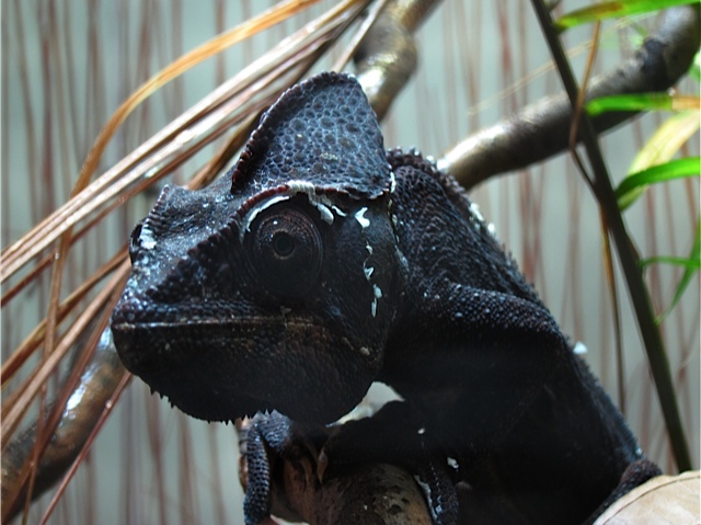 With a maximum length of 68.5 cm (27 in), it is often considered the largest species of chameleon. Oustalet’s Chameleons are sandy brown and grey in color but, like most chameleons, they can change color depending on mood and temperature, or as a mode of communication.