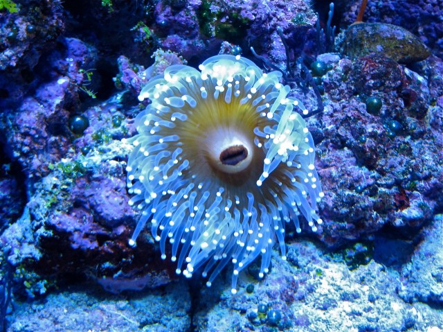 REMARKS: This close relative of sea anemones has sticky ball-tipped tentacles. Some species of shrimps and fish are immune to the stickiness and live within the tentacles.