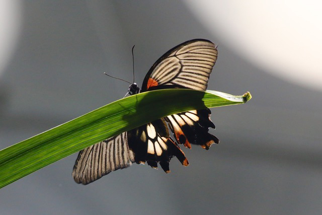 TAXONOMY Kingdom: Animalia Phylum: Arthropoda Class: Insecta Order: Lepidoptera (moths and butterflies) Family: Papilionidae  (Swallowtail butterflies)  Genus/species: Papilio memnon  GENERAL CHARACTERISTICS:  P.memon has four male and many female forms,  Male Great Mormons never have tails, while females may or may not. Span.is large up to 150 millimetres (4.7 to 5.9 in)   DISTRIBUTION/HABITAT: Range: Southeast Asia. Adults inhabit forest clearings and disturbed areas,   DIET IN THE WILD: P. memnon visits flowers of Poinsettia, Jasminum, Lantana, Canna, and Salvia. (known to mud-puddle)  REPRODUCTION:  Adults lay single eggs on the underside of leaves, which hatch in three days. For the first four instars, caterpillars resemble bird droppings. Pupation occurs after about 2.5 weeks.  References  California Academy of Sciences Rainforest 2017 Vetting Tim Wong  EOL <a href="http://eol.org/pages/131345/details" rel="nofollow">eol.org/pages/131345/details</a>   Lewis Ginter Botanical Garden <a href="http://www.lewisginter.org/sexually-dimorphic-butterflies/" rel="nofollow">www.lewisginter.org/sexually-dimorphic-butterflies/</a>  Butterfly corner.net <a href="http://en.butterflycorner.net/Papilio-memnon-Great-Mormon.1248.0.html" rel="nofollow">en.butterflycorner.net/Papilio-memnon-Great-Mormon.1248.0…</a>  3-6-1733186564111_551ab0392e_o