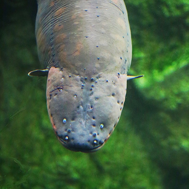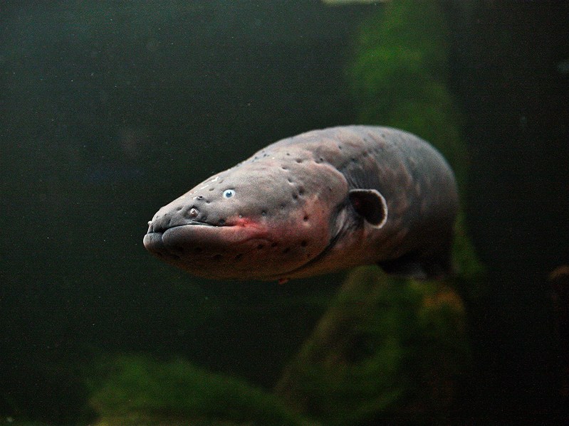 The long undulating anal fin allows the electric eel to move backwards or forwards. About half the musculature has been converted into electric organs which produce up to 650 V. These eels use their electricity to stun the fish they prey upon, as well as for defense.