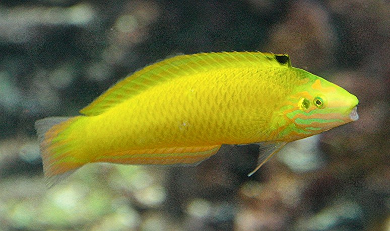 DIET IN THE WILD: The Yellow Wrasse is a carnivore; small worms, snails, crustaceans;