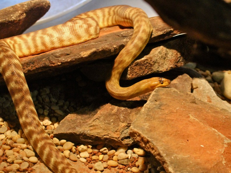 DIET IN THE WILD: A nocturnal hunter of small mammals, ground birds, and lizards. Because it hunts its prey in narrow tunnels, it cannot throw coils around its target. Instead the snake pushes a loop of its body against the prey, crushing it to death against the side of the burrow.