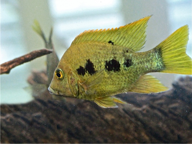 REMARKS: Genus name translates as “eartheater.” This common name applies to many species. A small, but popular food fish.