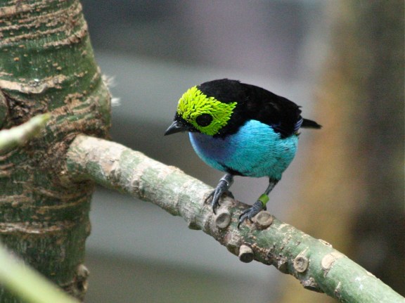 GENERAL CHARACTERISTICS: In Spanish, called “sieite colores” for its seven-colored appearance: green, yellow, scarlet, black, and three colors of blue feathers adorn this handsome bird. Monomorphic (males and females look similar). Length 13.5 to 15 cm 5.3 to 6 inches.