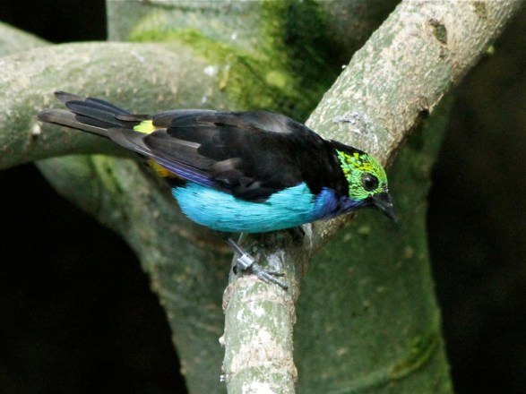 DIET IN THE WILD: Mainly fruit, buds, leaves. Forage from middle heights to treetops. Also, like other Tangara tanagers, picks insects from leaves or sometimes takes them in flight. Often moves and feeds in mixed flocks.
